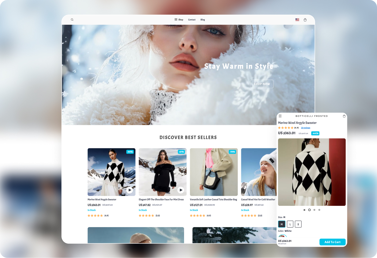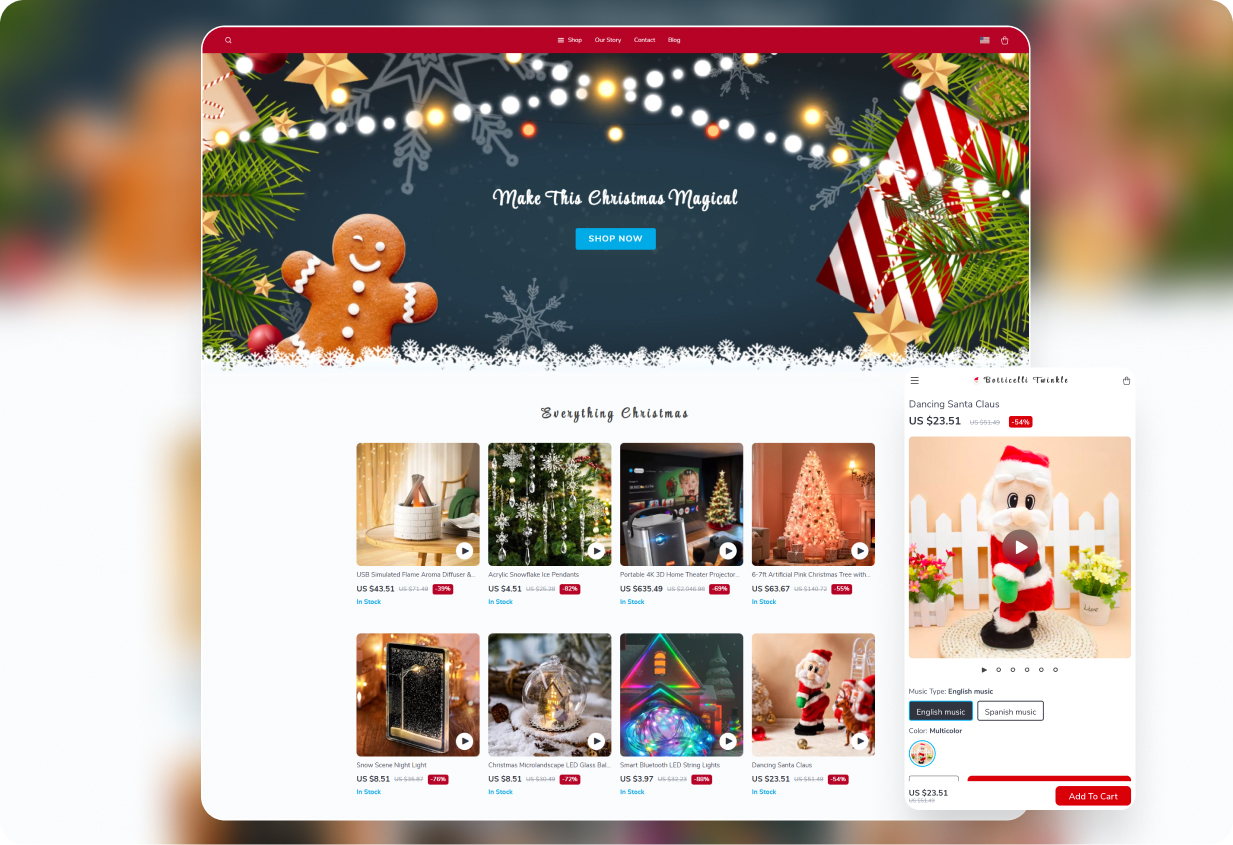To make the most of the holiday season, it’s essential to create an inviting store that captures the festive spirit. We’ve designed special themes that are visually striking, with vibrant colors and eye-catching banners, all optimized for mobile devices to deliver a smooth shopping experience on smartphones.