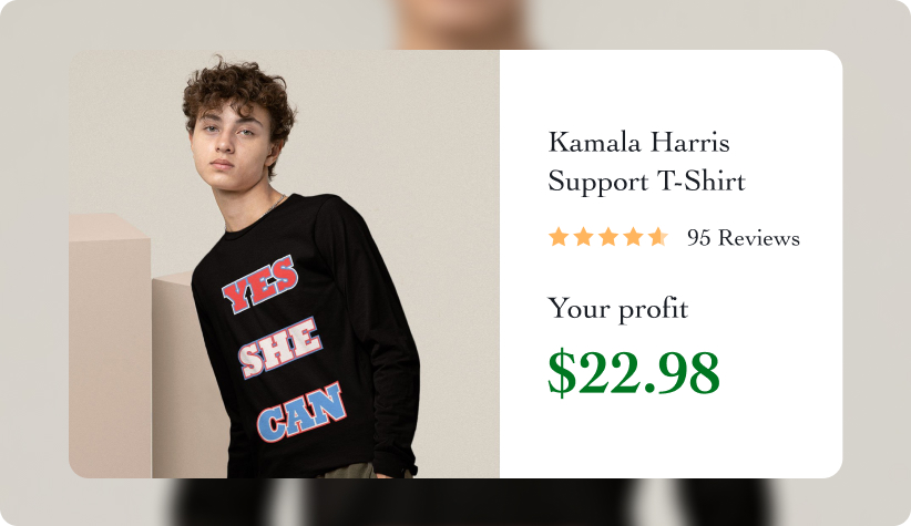 Selling Kamala Harris merchandise allows you to tap into her strong support as an innovative leader in U.S. politics. Her status as the first female Vice President, along with her focus on key social issues like equality and justice, makes her merchandise highly appealing to her supporters.