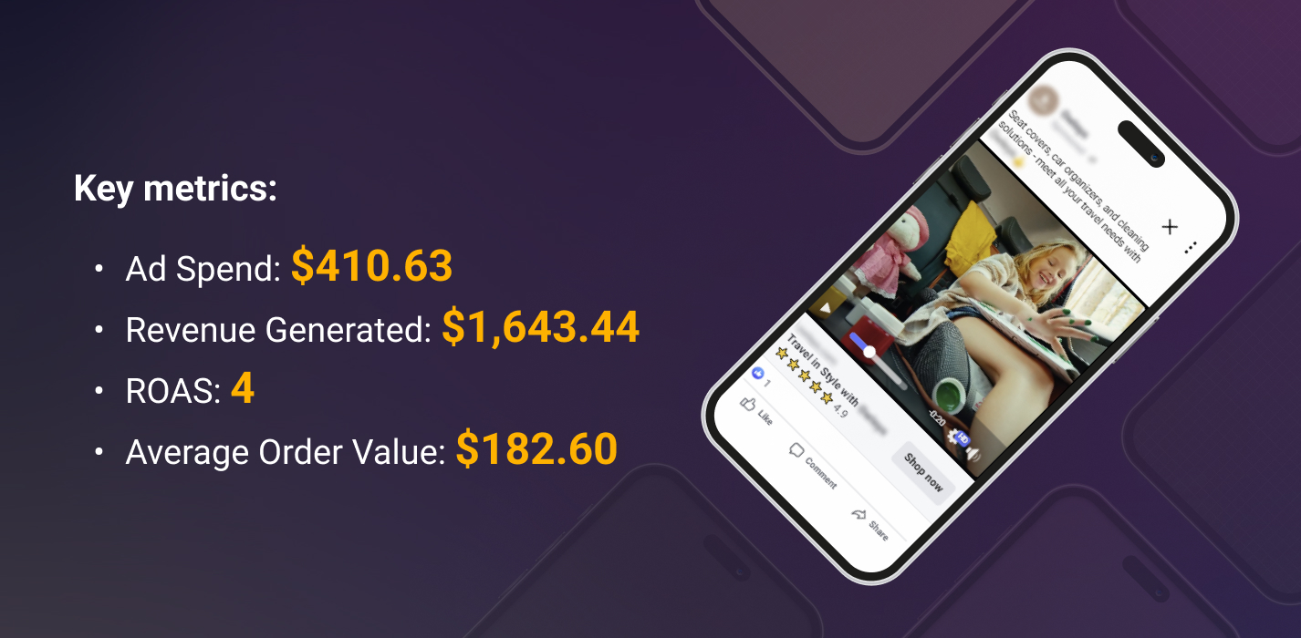 4. Targeting the right audience: The seller used Facebook’s targeting tools to reach a broad audience interested in auto and travel accessories. By focusing on specific demographics, interests, and behaviors, the ad was shown to potential customers most likely to buy.