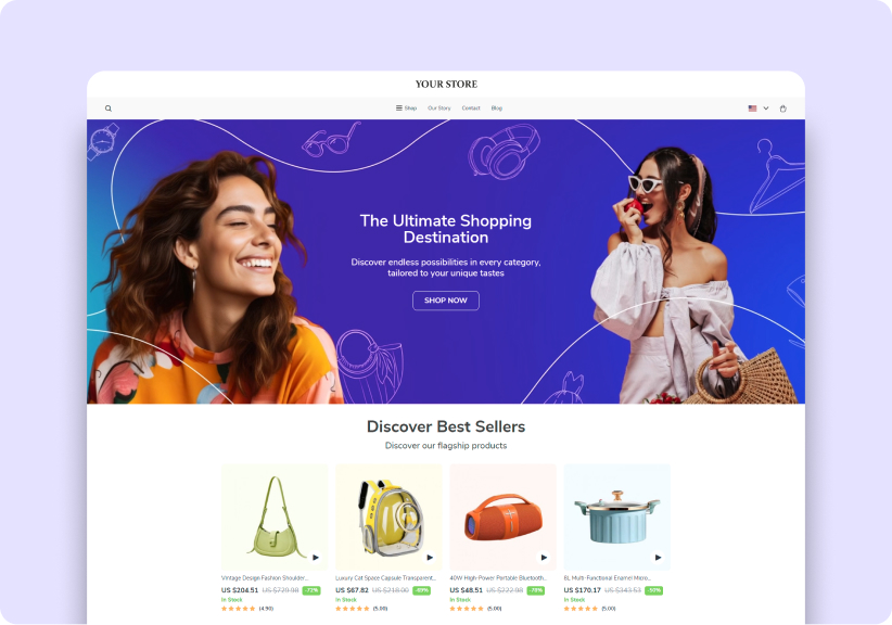 These products are meticulously selected to stand out and are already included in your basic store setup. With fast delivery across the USA, comparable to Amazon Prime, you can offer your customers exceptional service, ensuring they receive their orders quickly and become lifelong loyal customers.