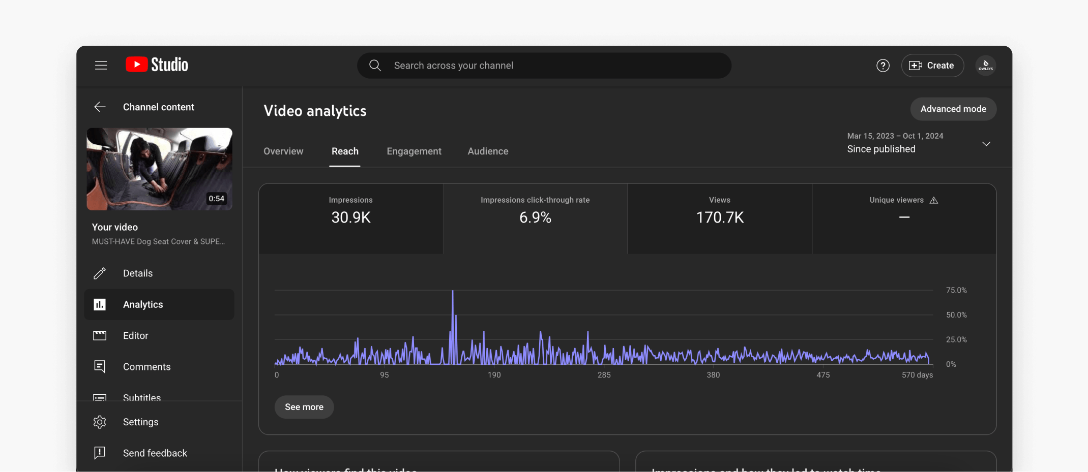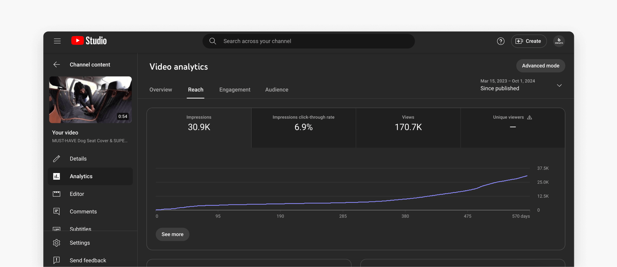 Knowing that 86% of shoppers check out videos before buying, our client used keywords like “car dog hammock,” “dog car seat cover,” and “pet seat protector” in the video’s title, description, and tags. This keyword optimization helped the video appear in the top search results whenever people searched for similar products.