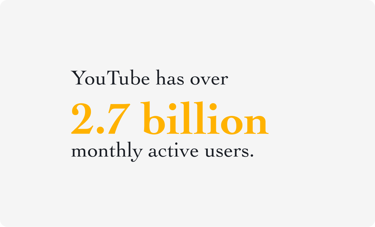 - Massive user base: with over 2.9 billion active monthly users, YouTube gives you access to a vast, diverse audience. Your videos can reach people all over the world, opening up opportunities to connect with viewers globally.