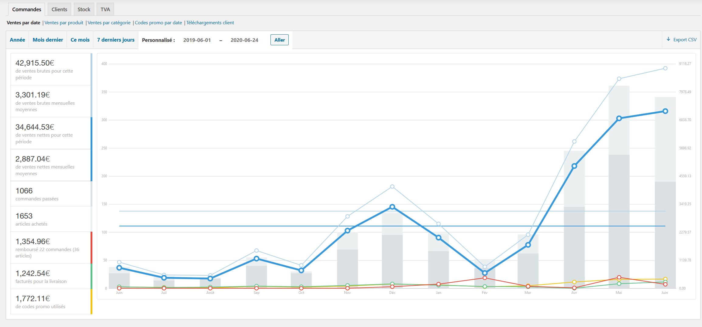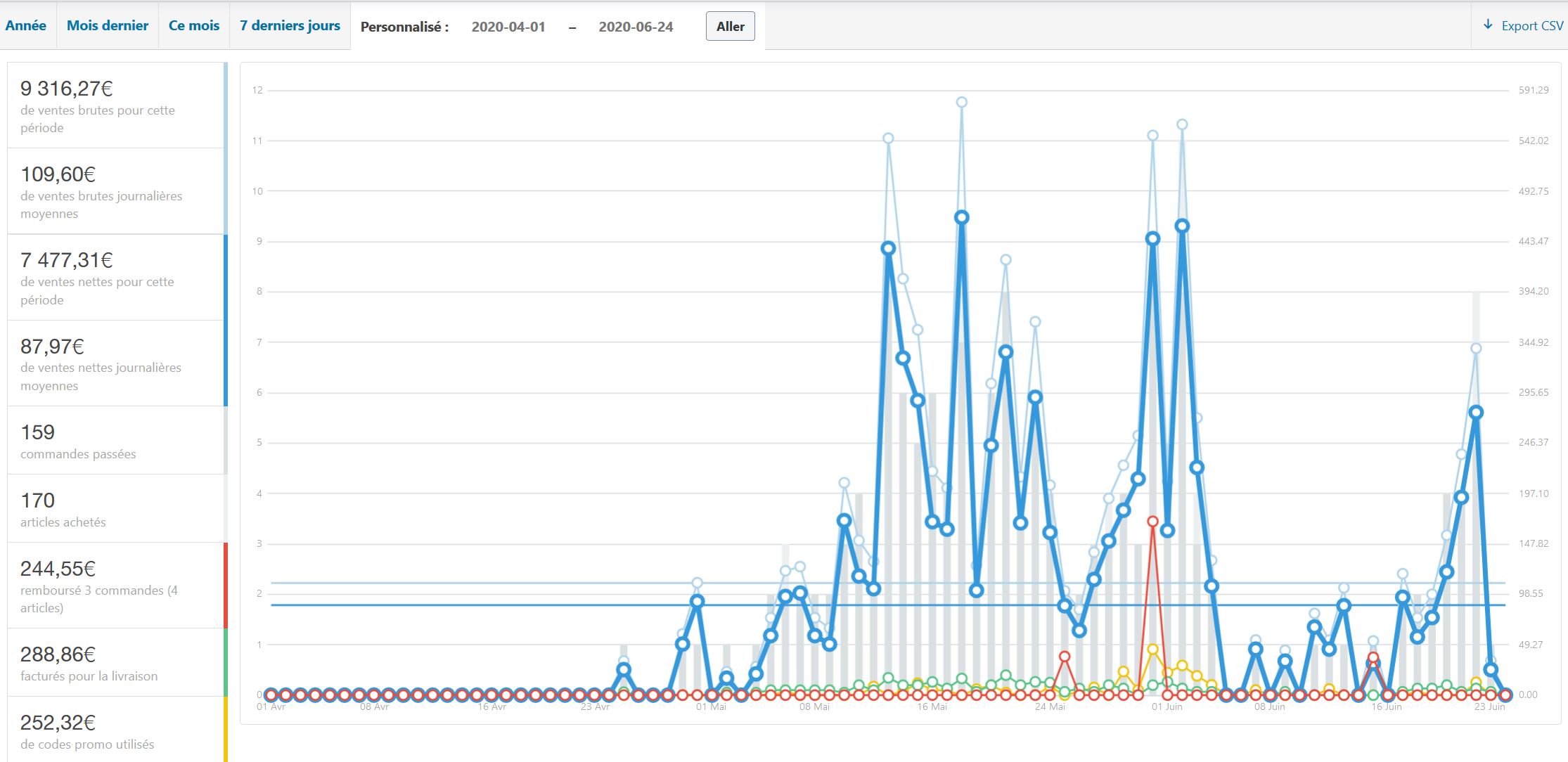 The second store was launched 2 months ago and made almost €10K during this time. On average, there’s a 25% margin, but it increases with every sale.