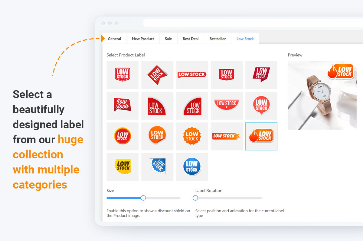 - Create a sense of urgency with labels from the Low Stock category