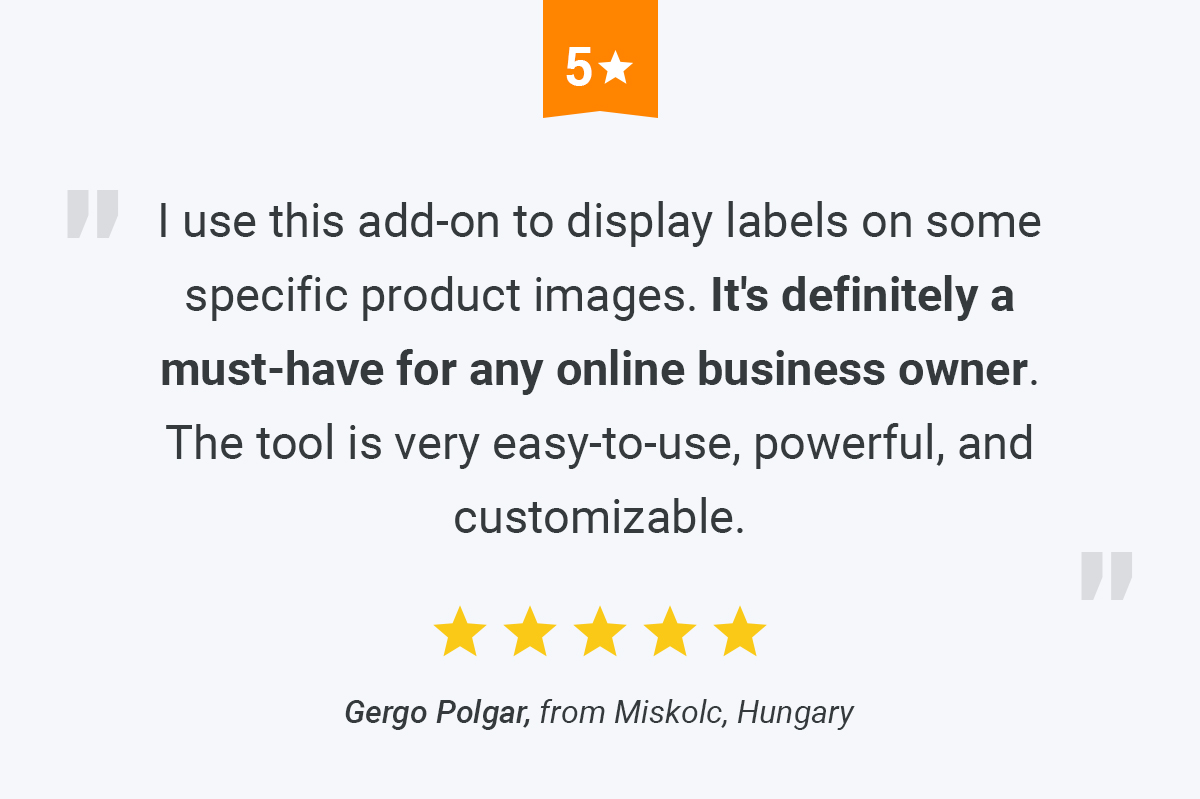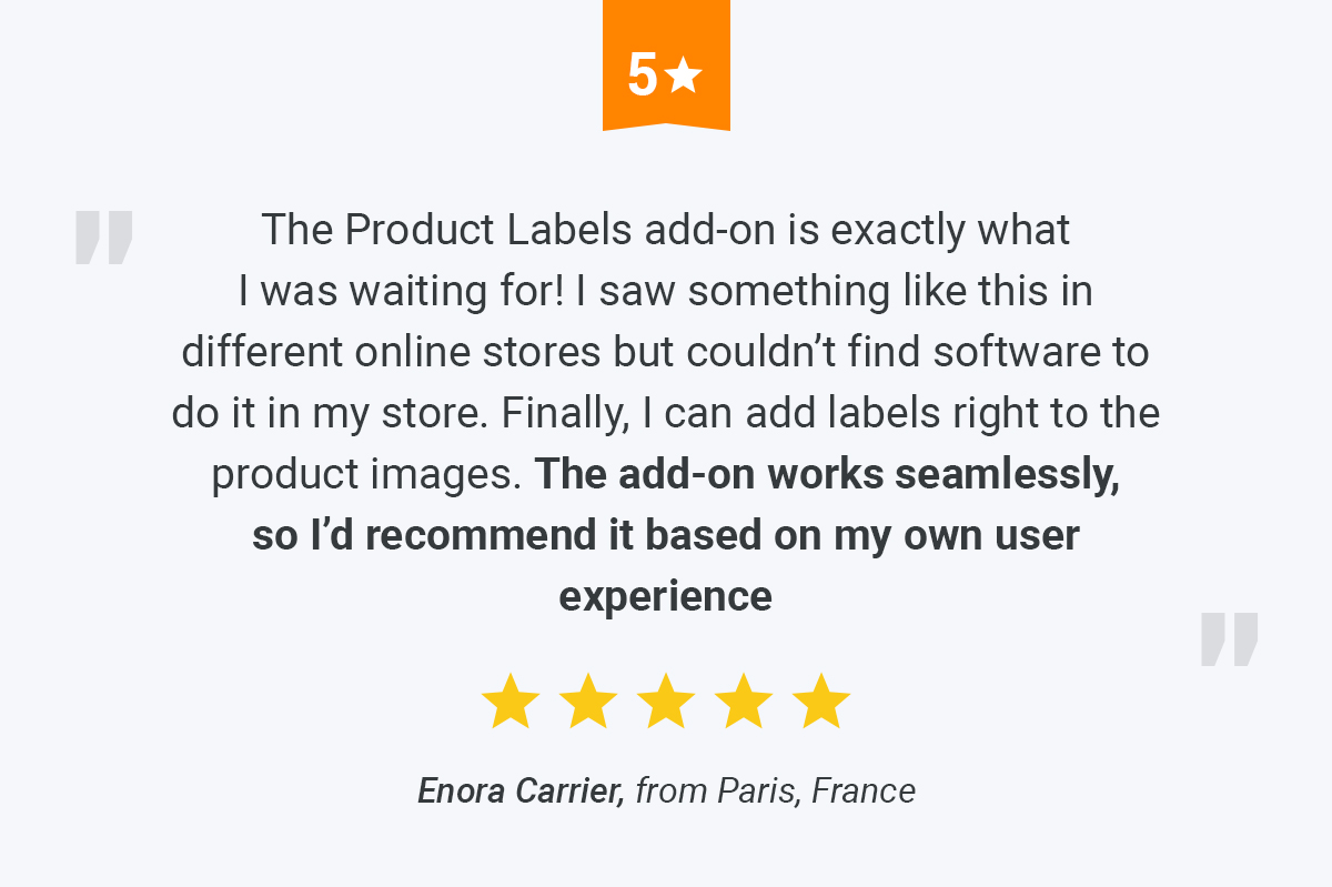 Want to use this effective method in your store? Meet the Product Labels add-on which allows you to add any kind of labels to your product images in a click.