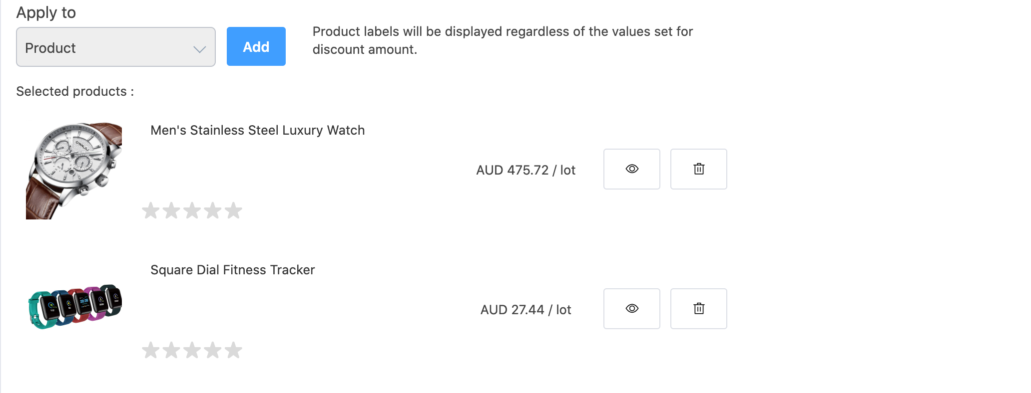 Apply product labels to a single target product or a whole category