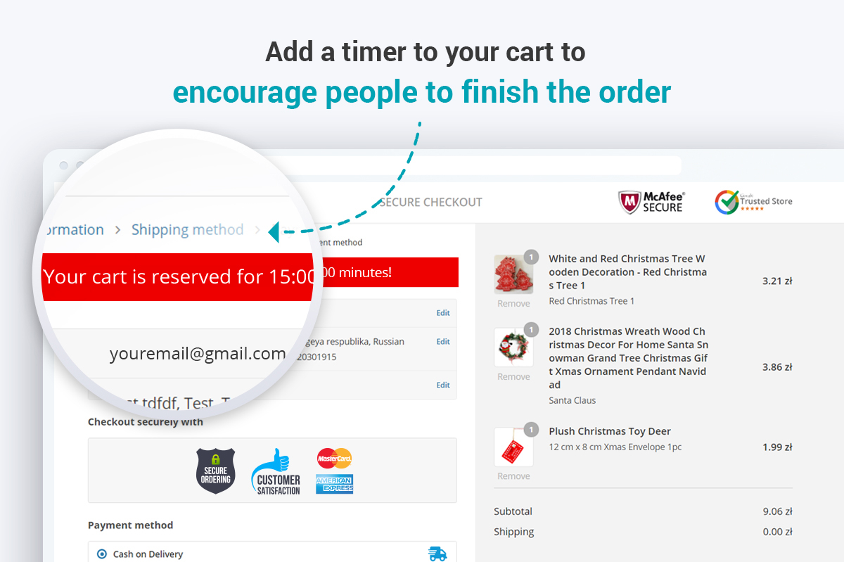 - Decrease the cart abandonment rate with a countdown timer