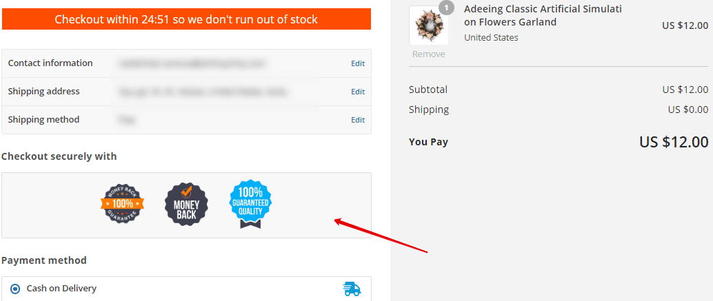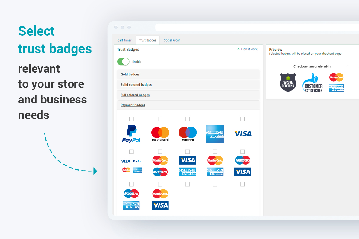 Boost buyer confidence with trust badges at checkout